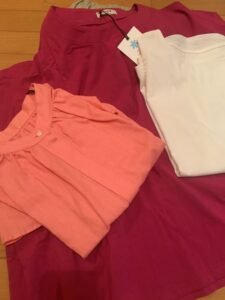 訪問した日の前日がお誕生日だった義母、「着やすい」「伸びる素材」の普段用の服をいくつかお持ちして、とてもよろこんでいただけました。もう、カラフルでいきましょ、着やすいものをきましょ。