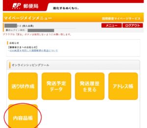 郵便局のサイトで利用者登録をして、「EMS(物品)」を選びます。