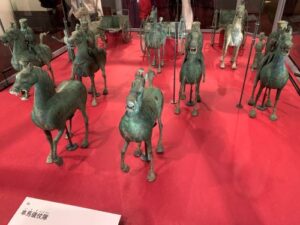 ひとつひとつの解説を読みながら、金や鏡、仏教の教えなどが長き道をわたって長い間にわたり日本(太宰府)へ、そして奈良に入ってきたんだな~と感慨深い。正倉院展でもいくつもシルクロードを渡ってきた宝物をみることができますが、今回の展示はいろんな歴史を乗り越えてきた中国にあるもの。よくこれらの世界遺産が残っていたもんだな。