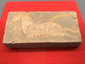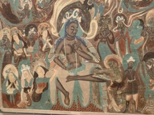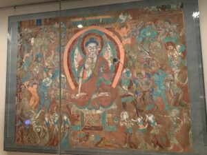 入って少しいくと、シルクロードを示す大きな地図。それぞれの遺跡の位置も書いてあります。展示の品にもひとつひとつ出土された遺跡名があって、「ウィグル自治区xx」がいくつも。山岳地帯や砂漠で培われた歴史の流れ、風景のパネルも多く展示されていて、一気にその世界へいざなわれます。