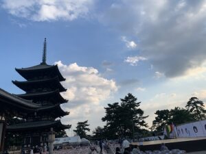 能が終わったのが19:30くらい、閉会後に希望者は東金堂内に入ることができ、少し並びましたが奈良を後にしたのは20時頃。