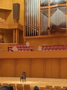 ソロリサイタルということで、舞台には椅子がひとつ。だけ。おぉ。