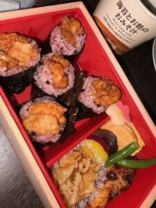 コンサート後、お店も少ないだろうと到着早々買っておいた「天むす&西京焼き弁当」を