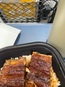 自分のランチ用には「ミニうな丼」を買い車内指定席で食す。パリふわで美味!
