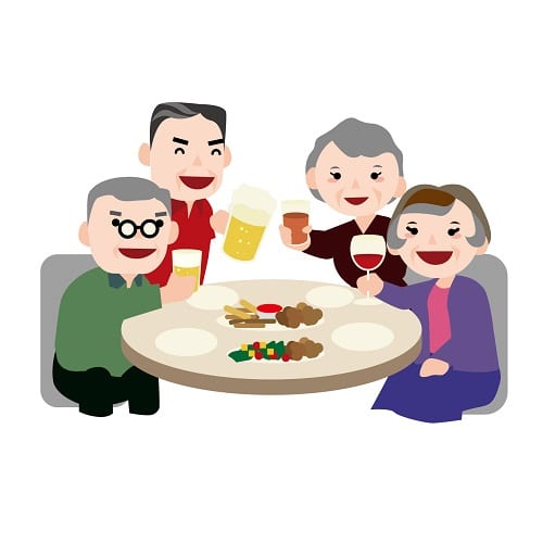還暦パーティやお祝い事、定期的に多くの人があつまる何かの会。