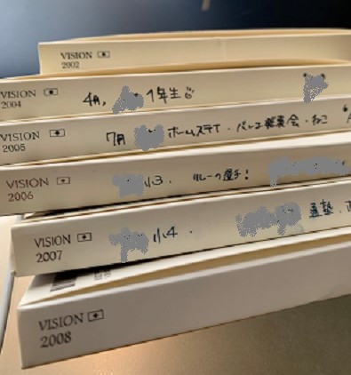 こちらはエルメスのレフィル群の一部。子供の学年とトピック、箱の裏側に10大ニュースを書いています。小学1年生、とかリレーの選手に選抜とか…かわいらしい時期でした(懐)