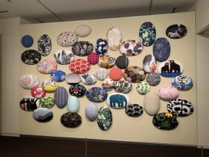 エスカレーターで降りた3階からは撮影OK, すぐに枕ほどの大きさのテキスタイルの集合体に迎えられます。