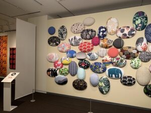 撮影はできないフロアなのですが、ムーミンファンの方なら小躍りするような展示スペースもありました。テキスタイルを飾る、見る、そして自分が楽しんで見せるものになっていったような歴史を感じます。