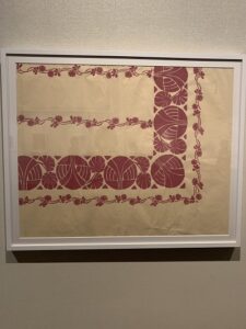 実際に各テキスタイルは病院のシーツ用だったり、エプロンだったり、子供の服だったりテーブルクロスだったり、いろいろな用途で使われてきた歴史が語られ実際モノのが展示されています。男性のシャツの生地だったりゴブラン織りのごついガウン用の下絵だったり。花や草も多いけれど、子供の絵や幾何学模様、そして明るい色から暗めまで幅広い表現のバリエーションです。