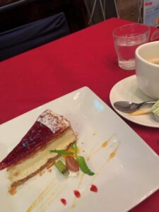ケーキセット(1400円)でキイチゴのミルフィーユ、美味。コーヒーも美味しかったのでまたこよ。