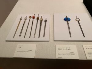 写真OKエリアもあって、櫛や髪飾りだけでなく、髷や髷を結うビデオが流れていたりと、こじんまりした美術館ながらいつも充実・満足の展示。光琳が下絵を描いた?櫛もありました。シンプルだけど味がある。それもまたよき。