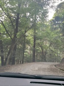 奈良奥山コースが最も長く、また奥までいくことができて、目的の「鶯の滝」までいけます。途中、砂利道もあり、ハイキングの方もおられるため車は徐行しながらいきます。立派な杉の木を始めうっそうとした森の空気がおいしい。あまりに立派な木々。おそれおおくて触れることもできません。