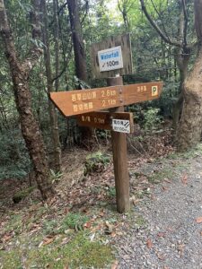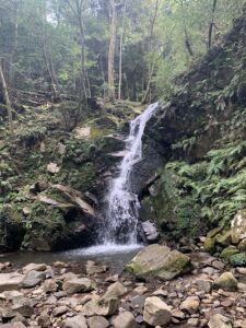 滝の近くに駐車場があるのですが、相当狭い道をいくことになります。車幅いっぱいの小さな橋を渡ったり前から車がきたら私だったらどうしようもないような、落ちそうな道幅のうっそうとした砂利道、ここは夫の出番🚙。さすがです。少し遠いところにある駐車スペースから降りていくこともできますが、ここからはおよそ100メートル、整備された石段を降りていきます。