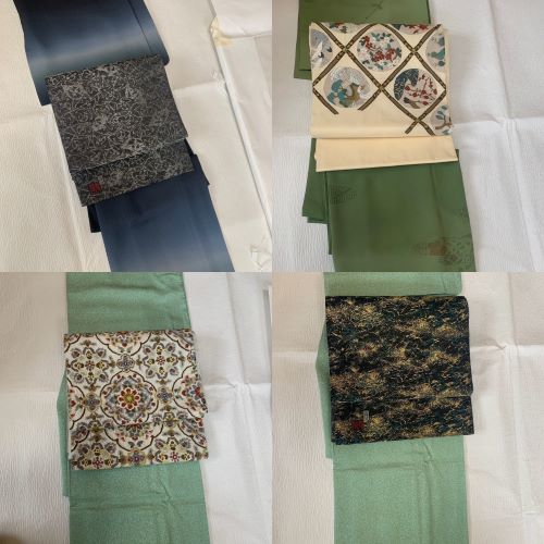 新春能はおめでたいので、少しだけ帯も豪華にしていきたいところ。派手になりすぎず、抑え目でありながら渋味のあるものというと…藤林徳扇(写真左上と右下)なんだな。。新品のまま母から譲り受けました。