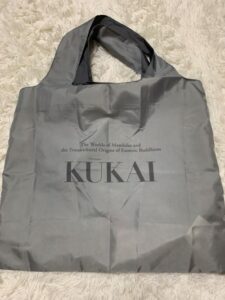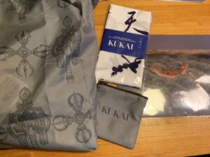 さてワタクシめは左から空海展エコバッグ、梵字手ぬぐい、海を渡る空海のクリアフォルダー。