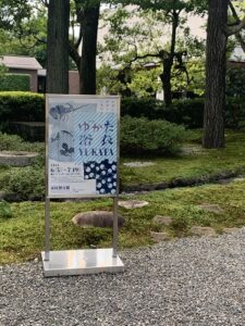 静かな館内、併設もあわせて1時間半くらいいましたか、しばらく外の暑さを忘れてゆったりした時間。実物の浴衣の大胆な絵柄や歌舞伎役者の浴衣姿の浮世絵、浴衣を纏った月下美人や柳下美人図など、涼やかで見ごたえがありました。