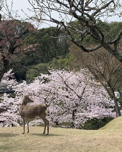座ってじっと桜を見る、あるいは語らう方々、自転車で池の周辺を周遊される方、じっくり座ってスケッチをする方。近くに広いのっぱらもあるし(飛火野)、トイレもあるし。普段は本を読むにもいいけれどいまは花を愛でるのが目にも心にもよさそう。いや~お弁当持参で半日はゆったりできる。鹿にお弁当をとられないように注意しつつ(笑)