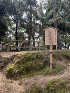 さて、駅へと向かう道すがら、能楽鑑賞の初心者の私は春日大社の1の鳥居の近くにある「影向の松(ようごうのまつ)」を拝ませていただくことに。参道のはじっこからあがろうとした足元がぬかるんでたようで(ちゃんとみてなかった)