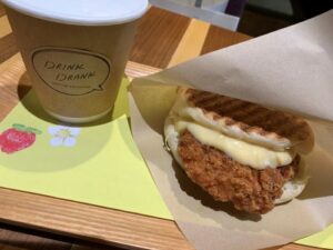 チキンフィレのパニーニとカフェオレで1180円なり。冷えた足にしみるぜ。あったかいぜ~。