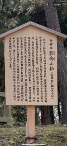 影向の松は春日大明神が降臨されて萬歳楽を舞われたという謂れのある御神木です。近くで見たかったけれど、恐れ多いってことかな。