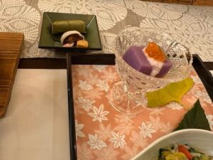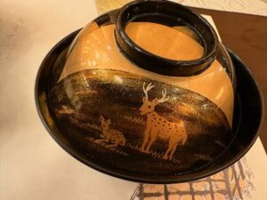 夕食、朝食とも鹿モチーフの器も楽しく、美味しくいただきました。