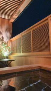 露天風呂つきのお部屋をとったのですが、大浴場も楽しめて、湯上りにヤクルトなんかもあったりして、2度ほど利用した母と私でした。