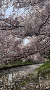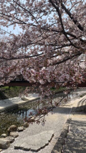 ・川面ちかくまでおりることができる。このポイントで私の前で熱心に撮影されていた海外の方にお写真をお願いされ、ご本人と背景の桜を撮って差し上げました。うまく背景の桜もいれることができて喜んでいただけました。ほっ。