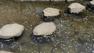 ・川面ちかくまでおりることができる。このポイントで私の前で熱心に撮影されていた海外の方にお写真をお願いされ、ご本人と背景の桜を撮って差し上げました。うまく背景の桜もいれることができて喜んでいただけました。ほっ。