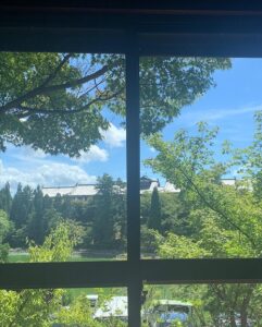 窓の向こうに見えるのは奈良ホテル。池越しに見ながら静かな昼席。