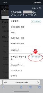 1.アマゾンサイトの右上の「アカウントリスト」をクリックして