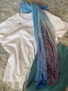 薄いストールは冷房キンキンの店内でひざ掛けに。