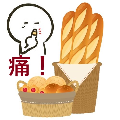 - パンを切る時に雑念?がわいてよそみをしてしまう(手元をなぜみないのか、私にもわからなひ)