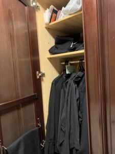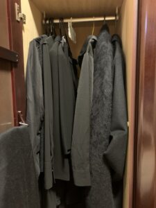 細長いスペースの左端にあるカバーのかかった2つはファーコート。1つはリメイクして軽くなりました。もう1つはリメイク待ち。いつやろっかな、どんなんにしよっかな。。この機会にさくっと虫干ししつつお隣に移動。