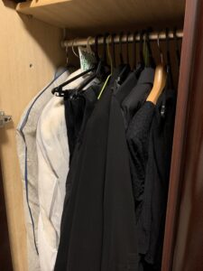 黒い服を1つのクローゼットにまとめて。いざという時もここだけで済ませられるスペースを作りました。