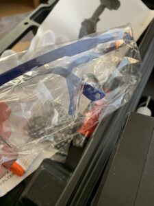 充電池が2つついていて交換用の刃もついてる。安全眼鏡や軍手までついていて、