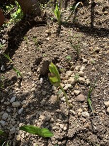 冬にこんもり残土と肥料を盛っておいたところから「ド根性な何か」が芽を出してきて、