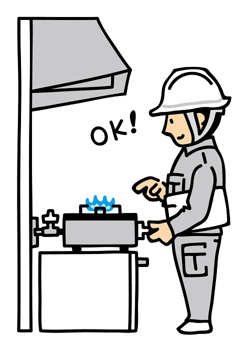 予定の時間を少し過ぎたころ、若いおにいさんが一人でこられて、外の給湯器をチェックされたあと、キッチンのガス器具のチェック。「問題なし」とのことでした。よかったよかった。