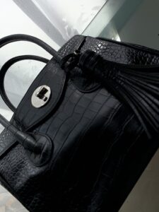 さよなら:マダムヒロコのクロコ型押しバッグ、買い取り数百円なり。