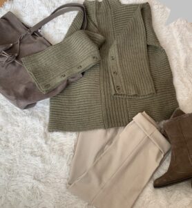 クーポン等駆使して9,700円ほどでゲットしたオリーブグリーンのセーター。600円持ち出しです。。