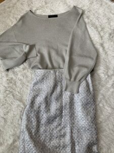 断捨離後、残してあった服のうち、高かったりしてちょっとしたお出かけに着てイケると思っていたタイトスカート。しゅっとしたシルエットや映える感じもいい。