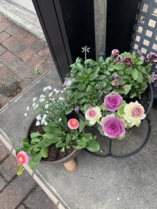 大小5鉢。土替え1鉢、あとはお馬のたい肥でマルチング。