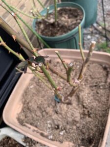 雪も一段落して、まだ寒いと思いきや、上着なしで少し暑いくらい。バラの鉢の土替えや肥料やり、そして鉢の位置替えをして、もさっとした庭が多少すっきり。