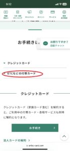 次の画面で自分が持っている付帯カードが出てくるので、解約したいカード(今回はETC)を選んで、解約終了。現物にもハサミをいれてごみ箱へ。これですっきり!