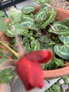 無事に夏越しできた2鉢のシクラメン。1つはつぼみ、1つはもう花が咲いていました。
