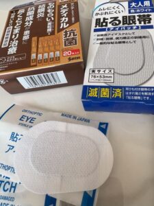 この時期は病院もお休みだし救急でもないので、薬局で抗菌の目薬をゲットしてまめにさしていましたら、こんな眼帯をみつけました。「貼る眼帯」とな。