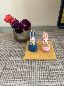 リビングのテレビの横に伯父母からいただいた娘用の小さな雛うさぎさん。
