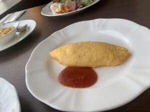 朝食バイキング。お好きな卵メニューをオーダー。私はきのことチーズのオムレツ、夫はスクランブルエッグ。あつあつで持ってきていただけます。お魚や鶏肉、和のごはんやパン、サラダも充実でベーコンは焼き立てかりかり!カレーもあったような。。