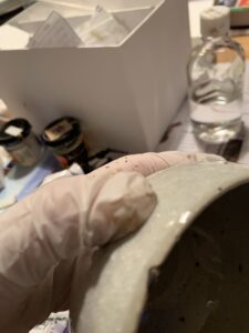 なぜ一人の時かというと材料の1つ「テレピン油」がものすごくきついシンナーっぽいにおいで、私は嫌いじゃないんだけど家人と飼い猫に迷惑となるので。お天気の良い日のお昼過ぎくらいに窓をあけっぱなしでも寒くない、金継は春と秋がいいですね。ご近所にまでただようほどのにおいでもないのでまあ大丈夫でしょう。