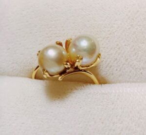 こちらはパールリング のサイズ直し。母から譲り受けたのでかなり古いもの。父から母への贈り物でした。私が結婚した時に譲り受け、同じ25年の時を経てクリーニングもしていただけて、ぴかぴかです。リングが華奢なのでパールが凛と目立って50’sだからこそのお出かけに重宝しそう。ジュエリーも自分も時を経てますます渋い輝きを。