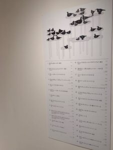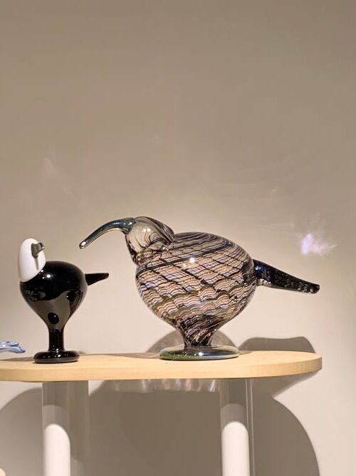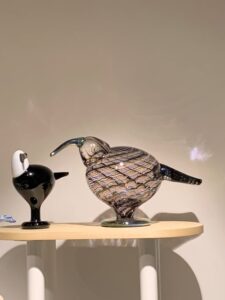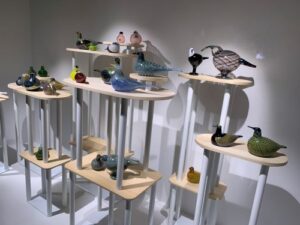 入り口にはいってすぐにアアルトデザイン、出口のところにトイッカのバードが整然と並び、それらは写真撮影OKとのことで、みなさん近づいたり遠のいたり。